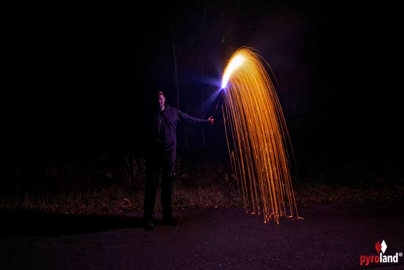 Ganzjährig verwendbar und RIESIG, produziert Wasserfallfunkeln bis zum Boden und ist als Handfontäne zugelassen! Dieses Produkt bietet allen kreativen Köpfen unglaubliche Möglichkeiten für atemberaubende Bilder und macht garantiert in jedem Feuerwerk eine gute Figur.